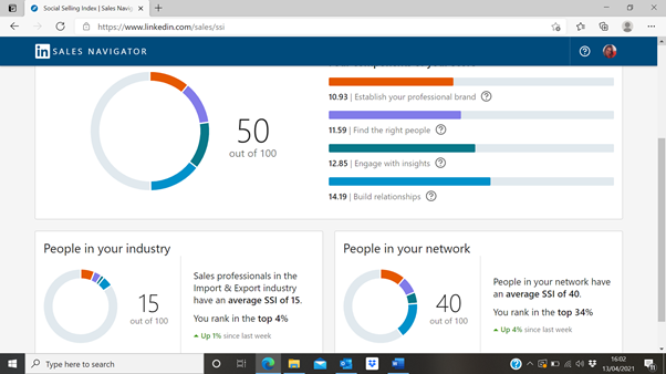 Thank you for the last session today. My LinkedIn SSI Score has doubled from when I started your LinkedInCredible Training course! Many thanks for the past 7 weeks. It has been really interesting and insightful. I will certainly be using the information and knowledge you have given us to improve my profile and make it more of a beneficial work tool.